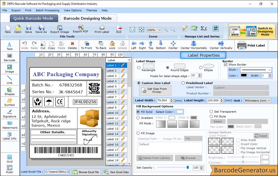 Now design high resolution barcode labels, tags and stickers to meet packaging supply companies and distribution industry barcode and labeling needs. Using Barcode label maker software you can design barcode tags, labels and stickers in your own style. Barcode generator software is the optimum solution for various packaging industry including food industry, packaging companies, wholesale packaging supplies, retail packaging, industrial packaging and many other similar organizations.